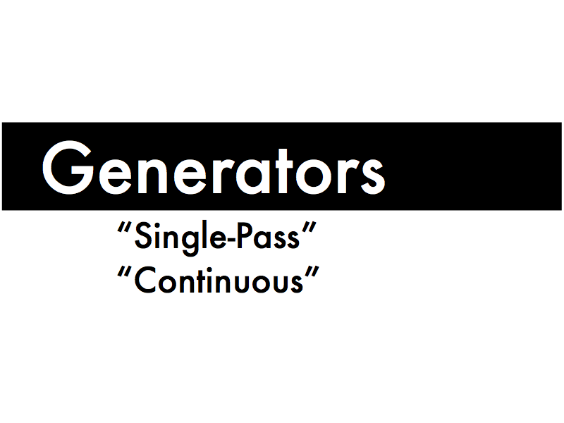 First, "single-pass" generators, which can only be used once before having to be reset.